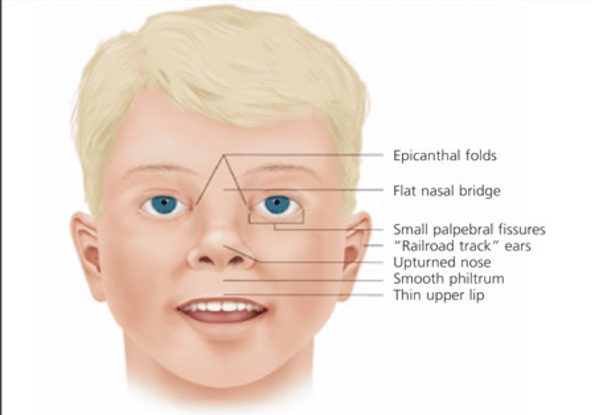 - Dystopia canthorum (wide-set inner corners of eyes) in WS1 and WS3