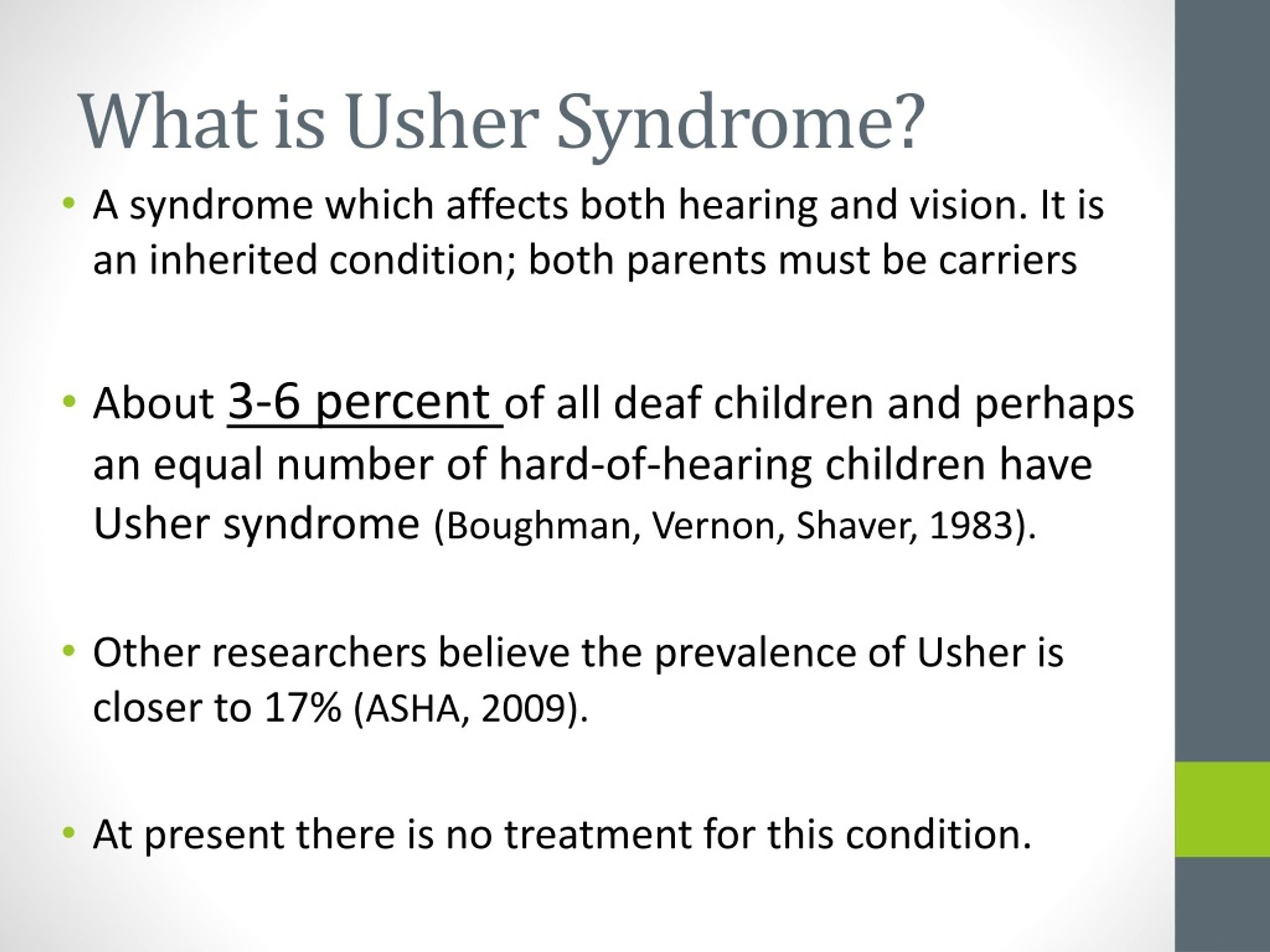 - Castiglione, A., & Möller, C. (2022). Usher Syndrome. Audiology Research, 12(1), 42–65. https://doi.org/10.3390/audiolres12010005
