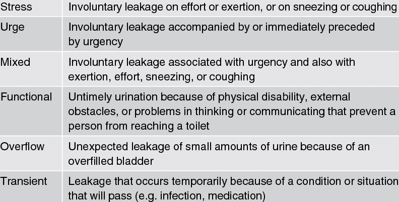 Urinary incontinence (UI) is a common condition characterized by the involuntary loss of urine. There are several types of UI, each with distinct pathophysiology, signs and symptoms, and treatment approaches.